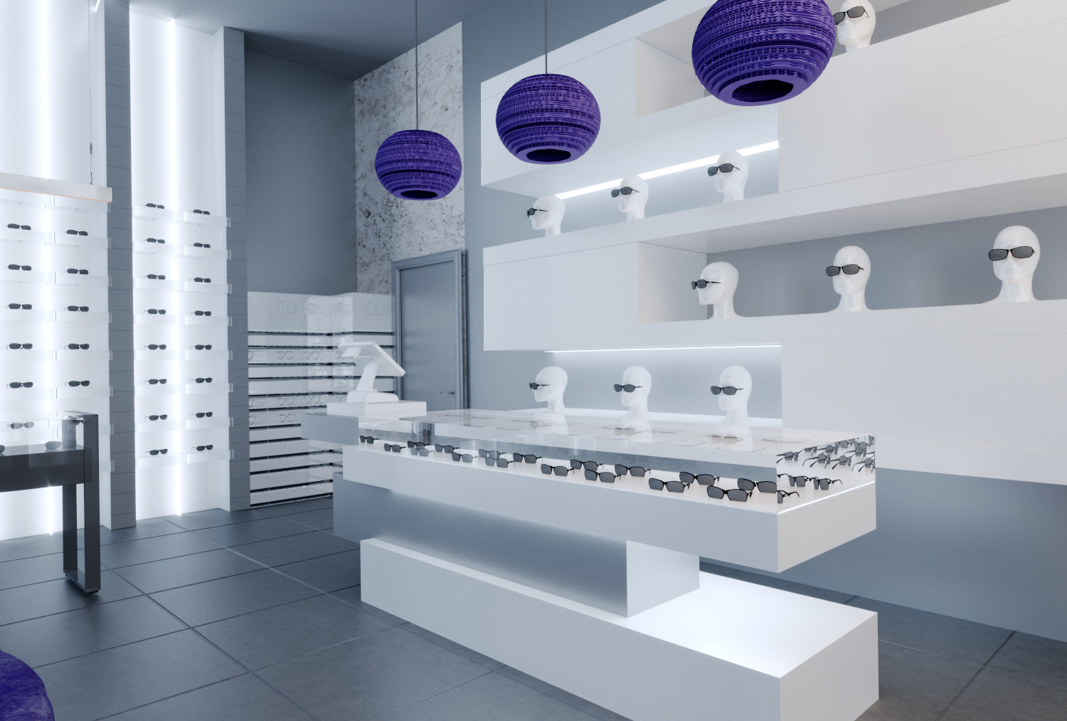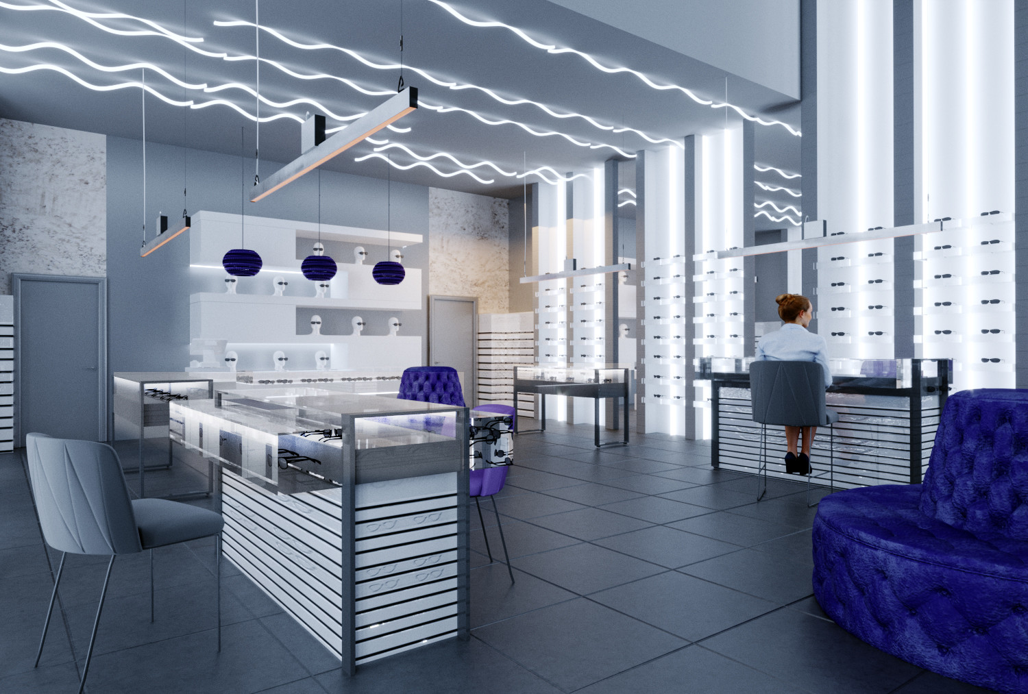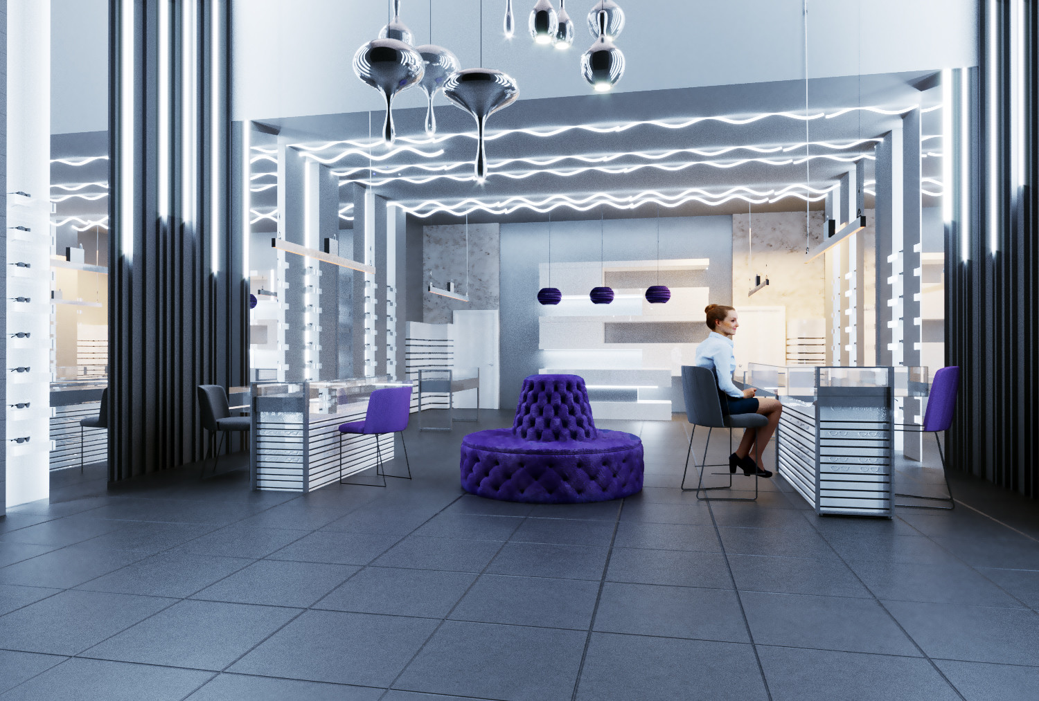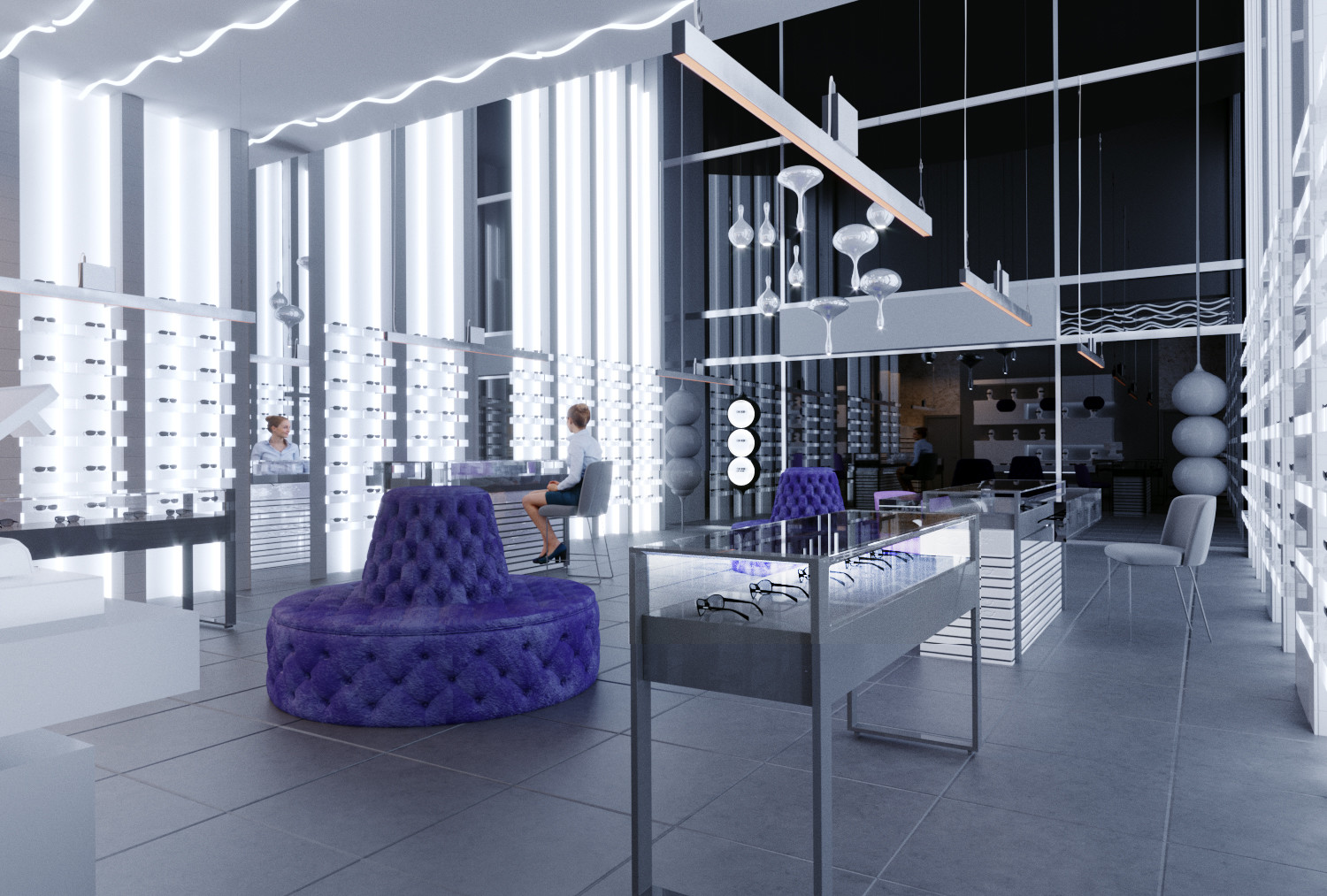 Один из салонов сети "Экран Оптика", выполнен в новом космическом жанре. Представляет собой пространство для путешествия вне временном жанре оптики, ведь очка как космос вечные, а формы их безграничны и многообразны.