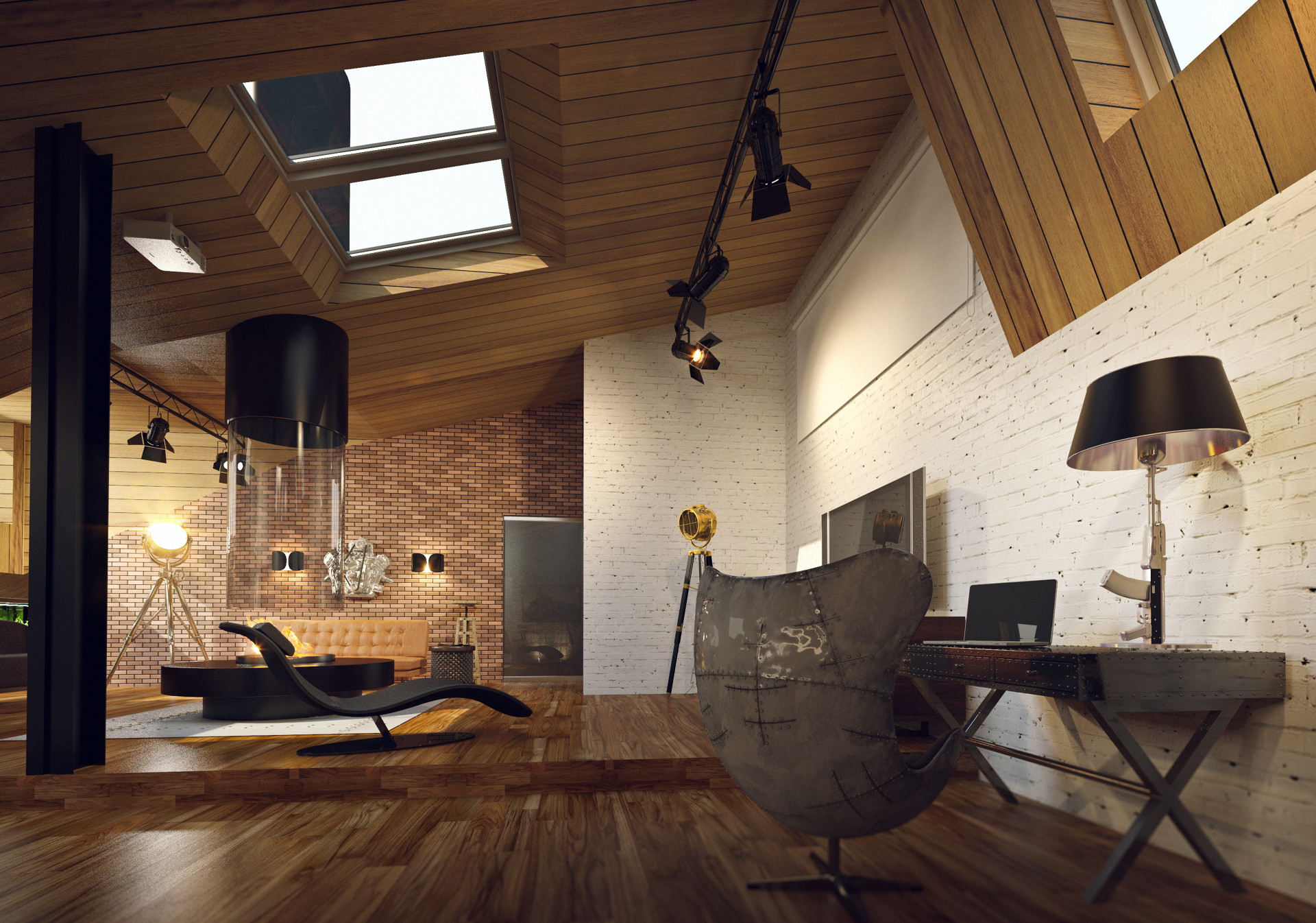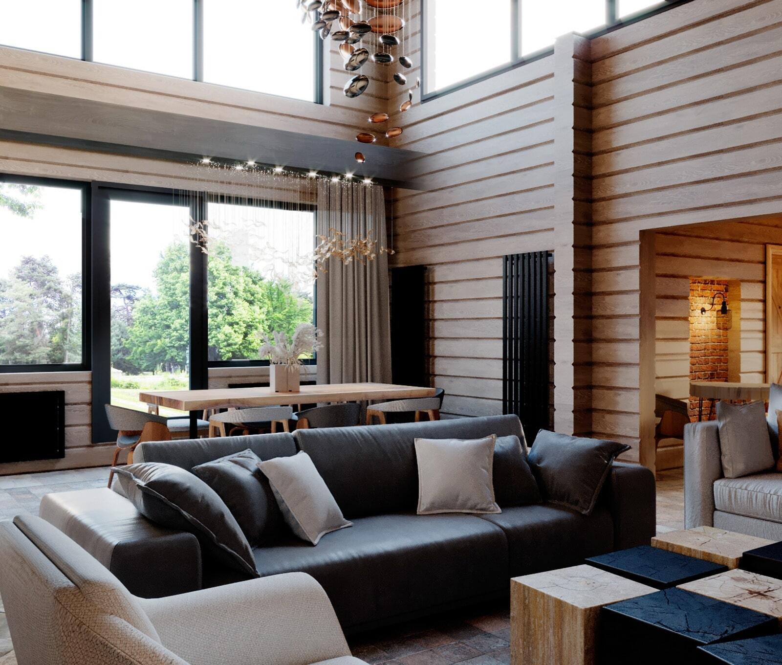 Лофт в лесу 300 м². Просторная загородная резиденция для семейного отдыха на природе. Полностью отражает характер хозяина.