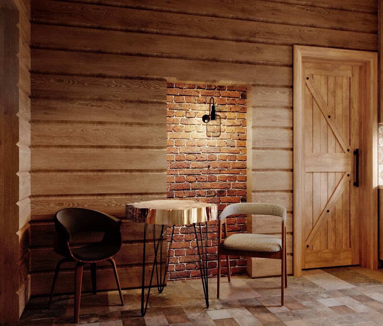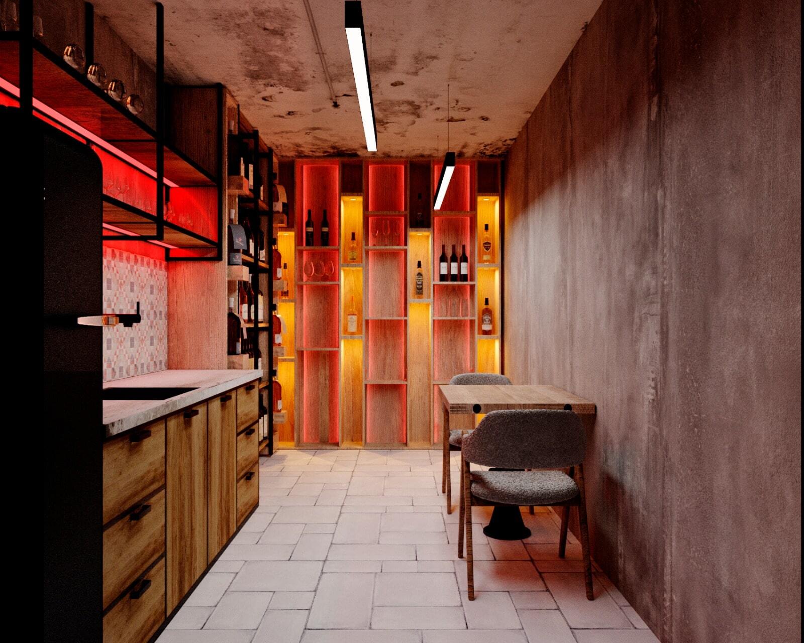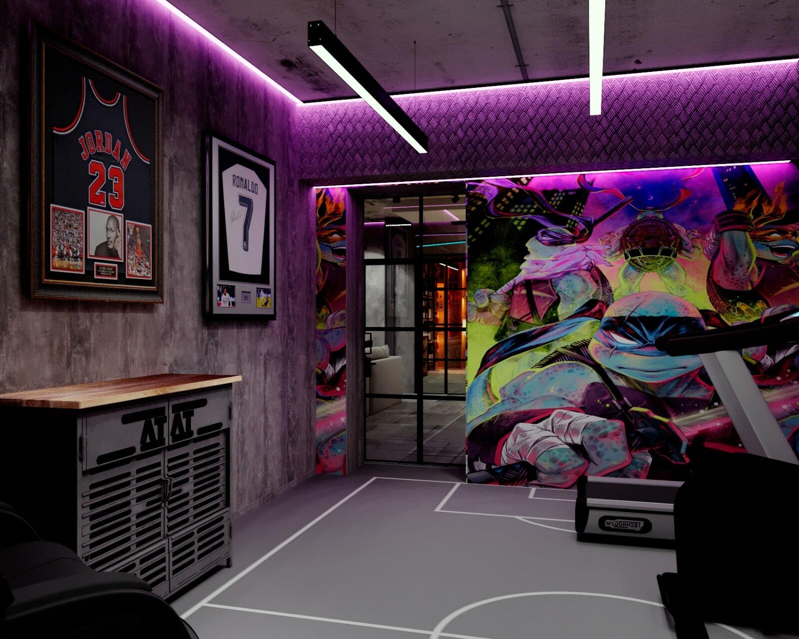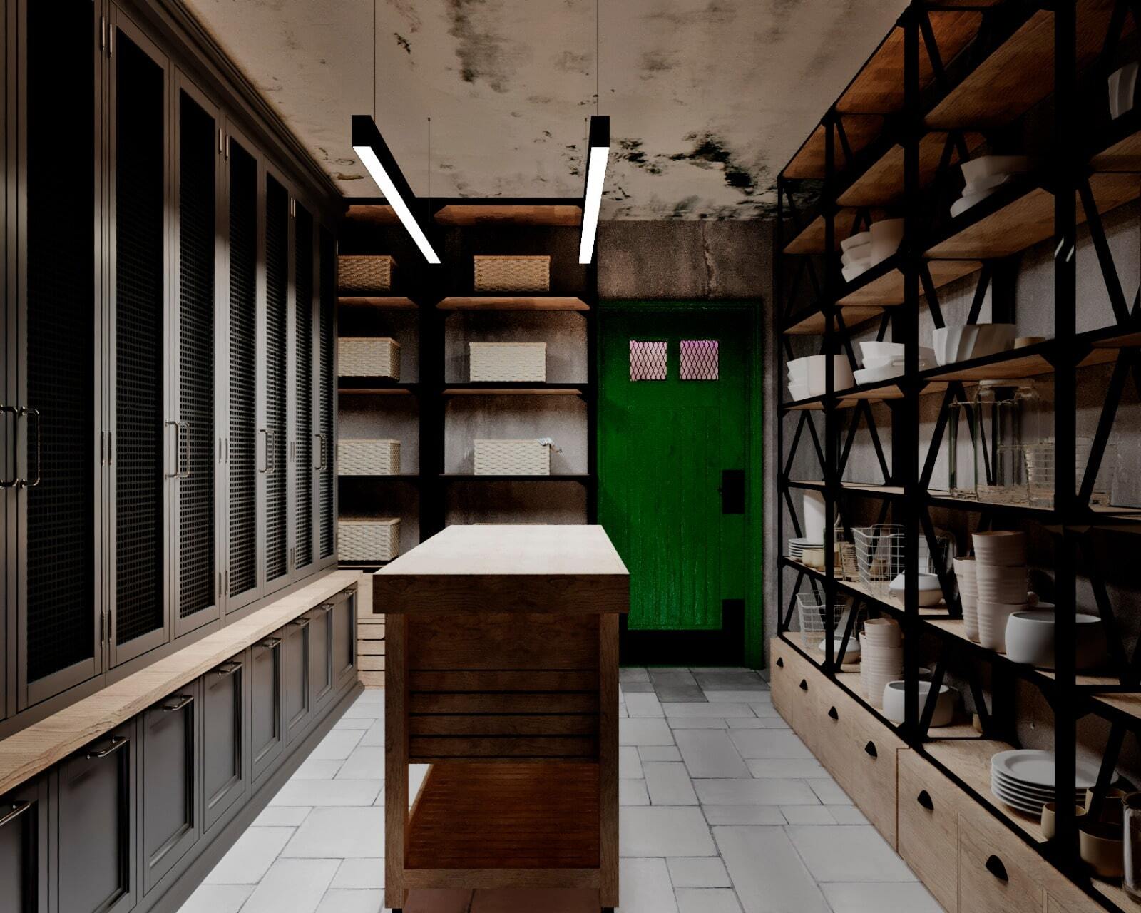 Зона отдыха расположенная на цокольном этаже гостевого дома сильно отличается по стилю от 1 и 2 этажа своими смелыми и необычными решениями. Попадая в подвал оказываешься в загадочной атмосфере. Каждая дверь хранит за собой неожиданный арт объект.