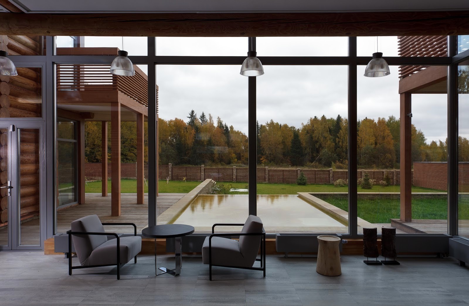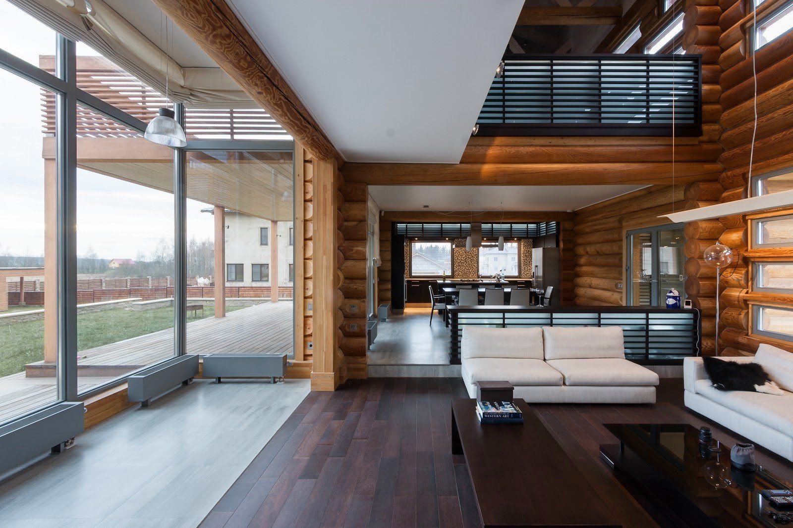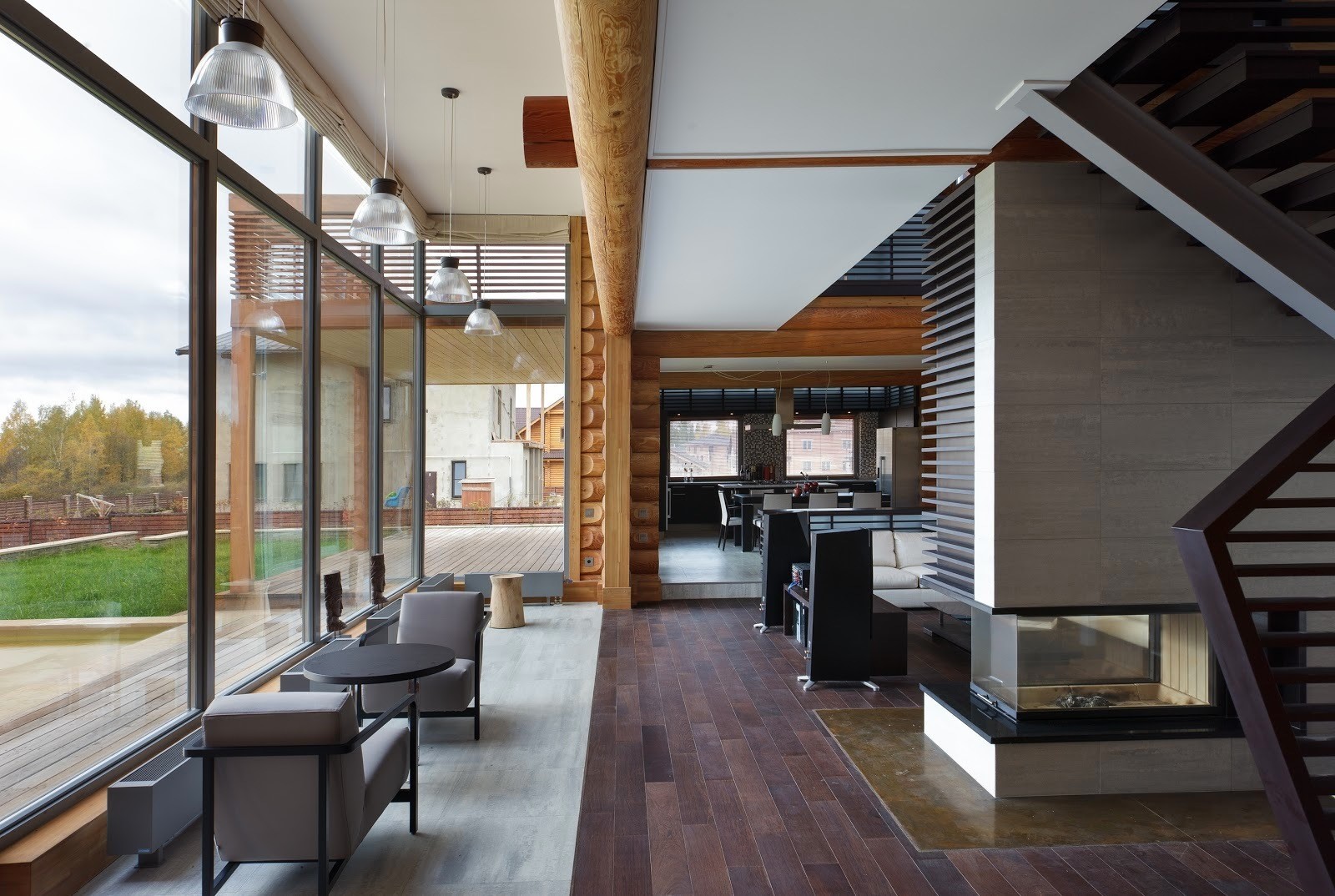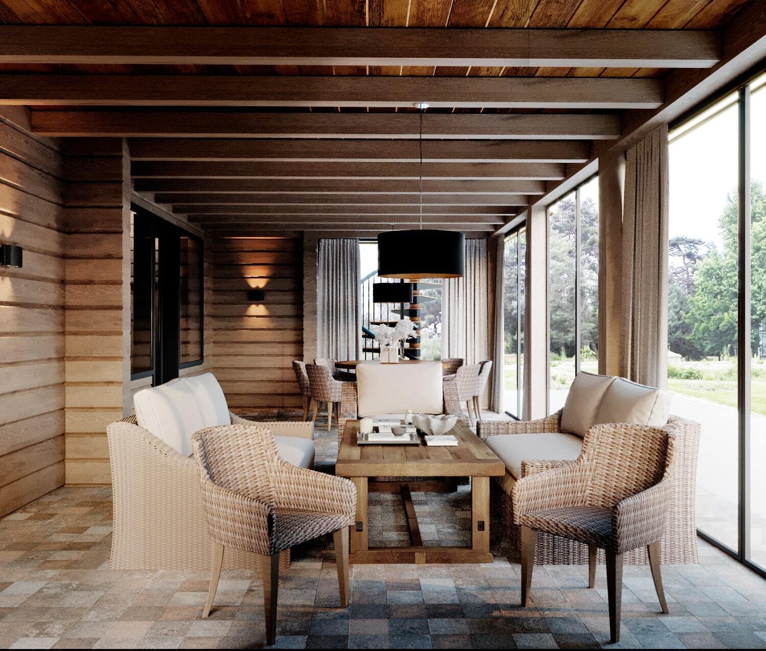 Дом из бруса со спа зоной в современном стиле с элементами эко стиля.