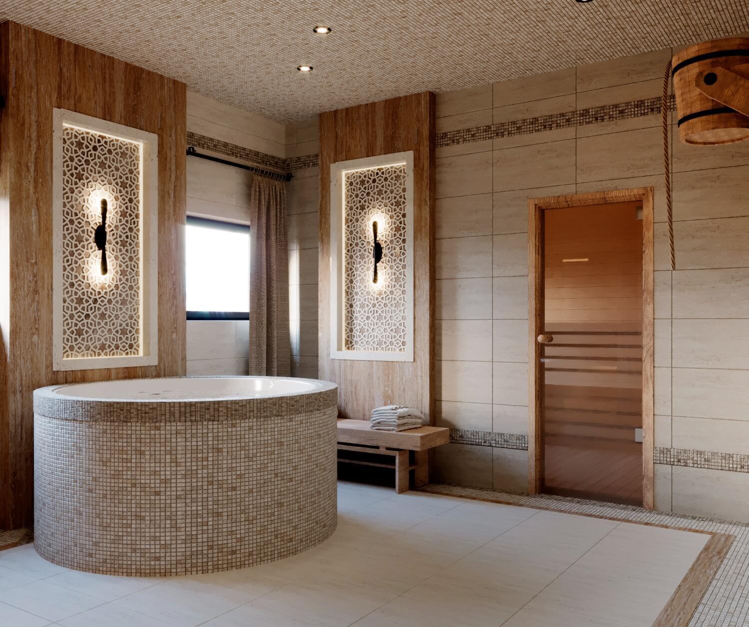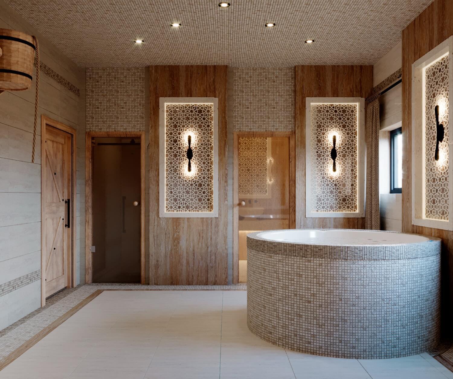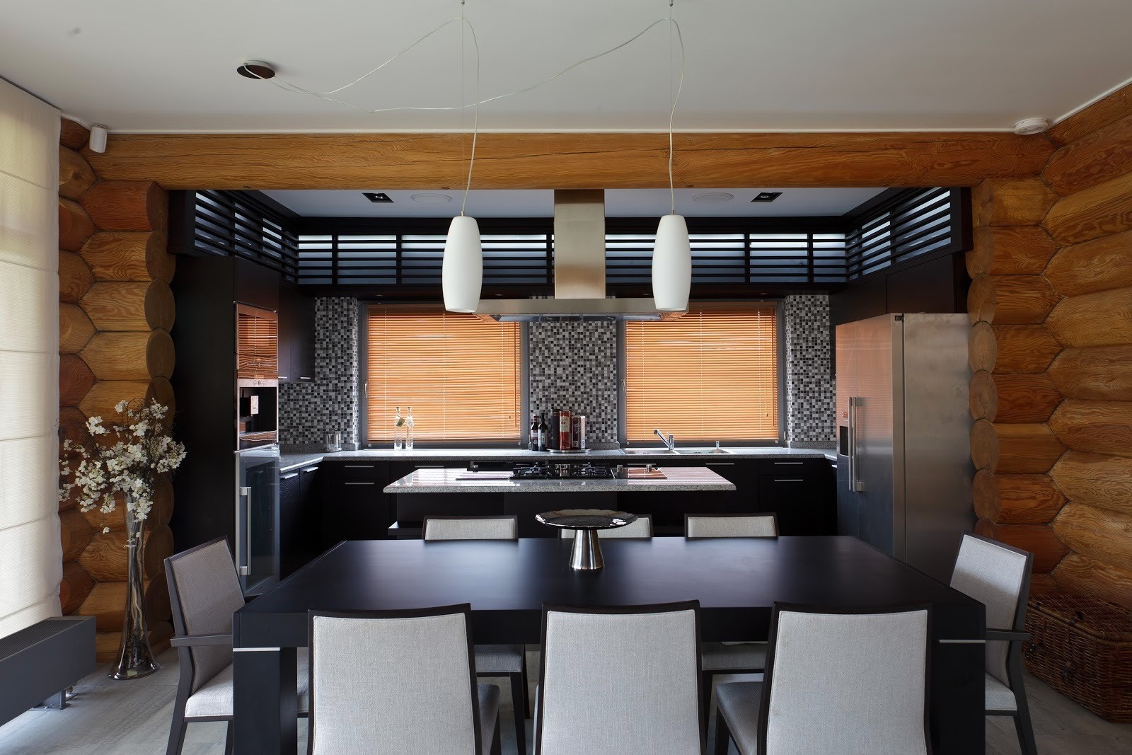Дом из бруса со спа зоной в современном стиле с элементами эко стиля.