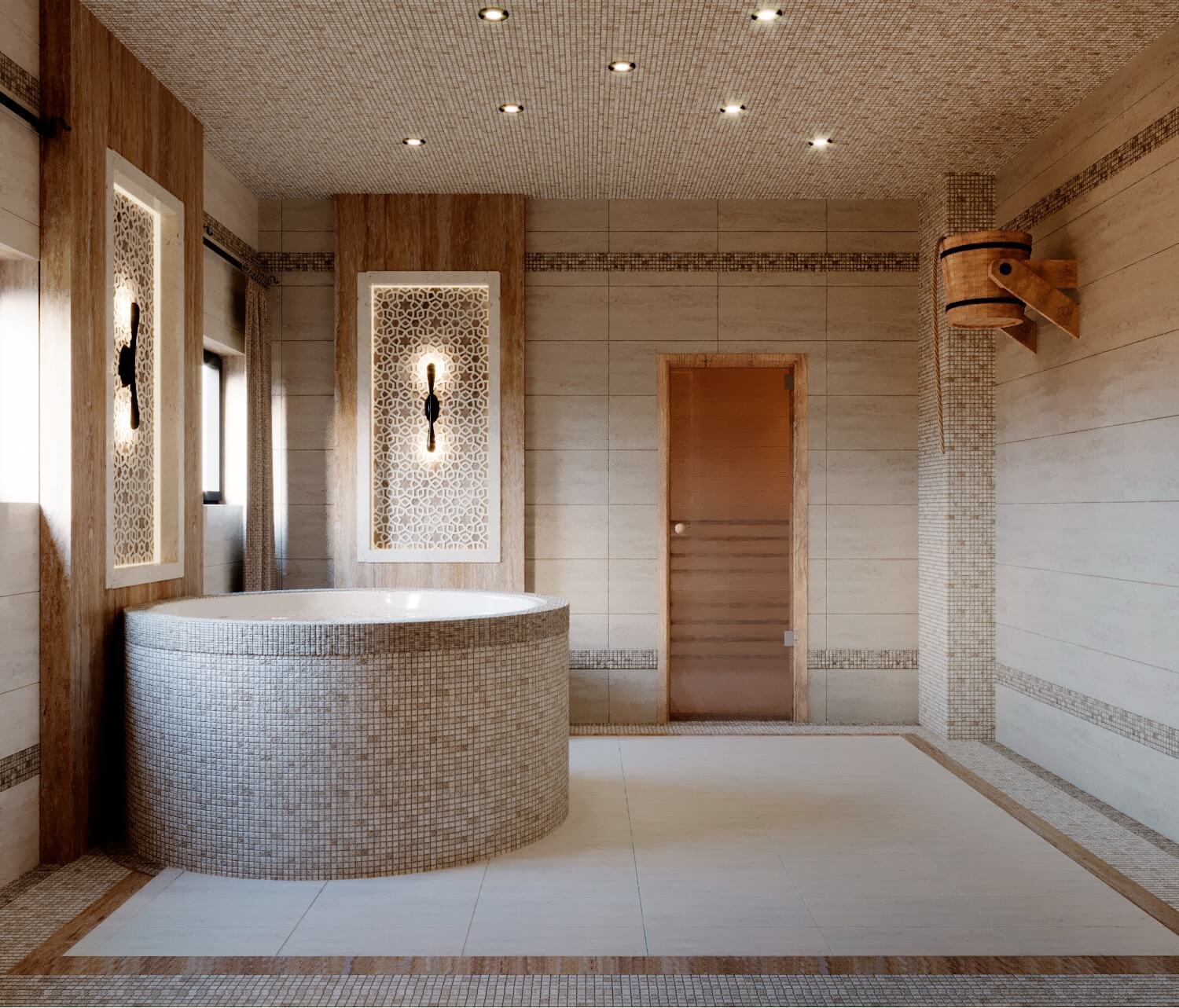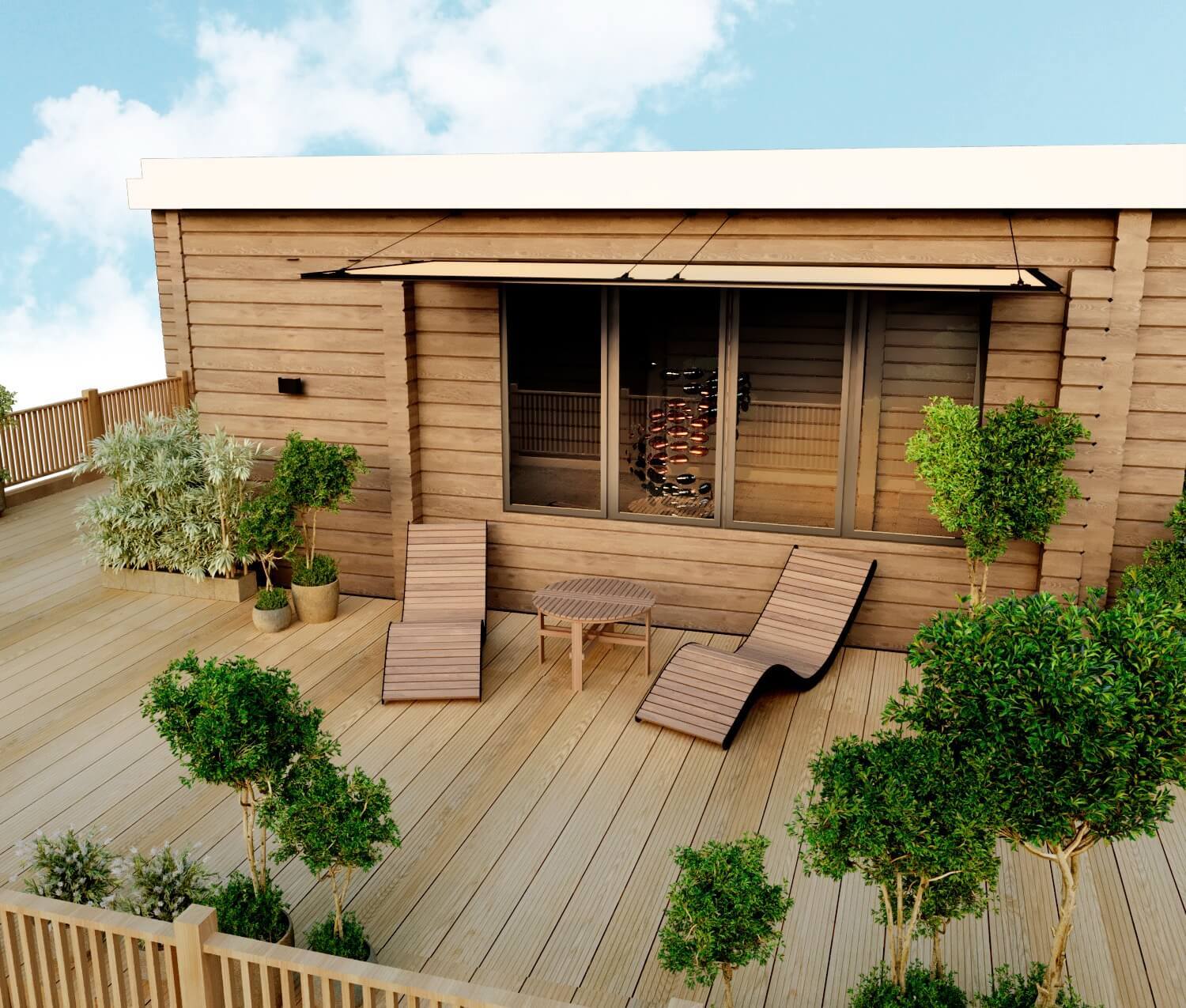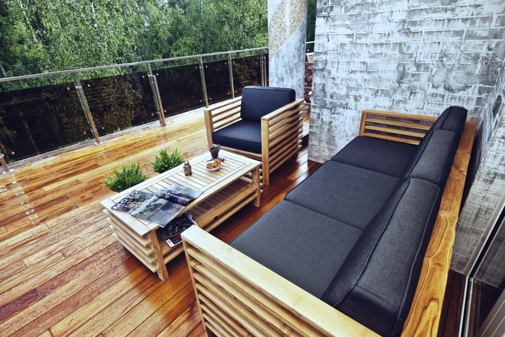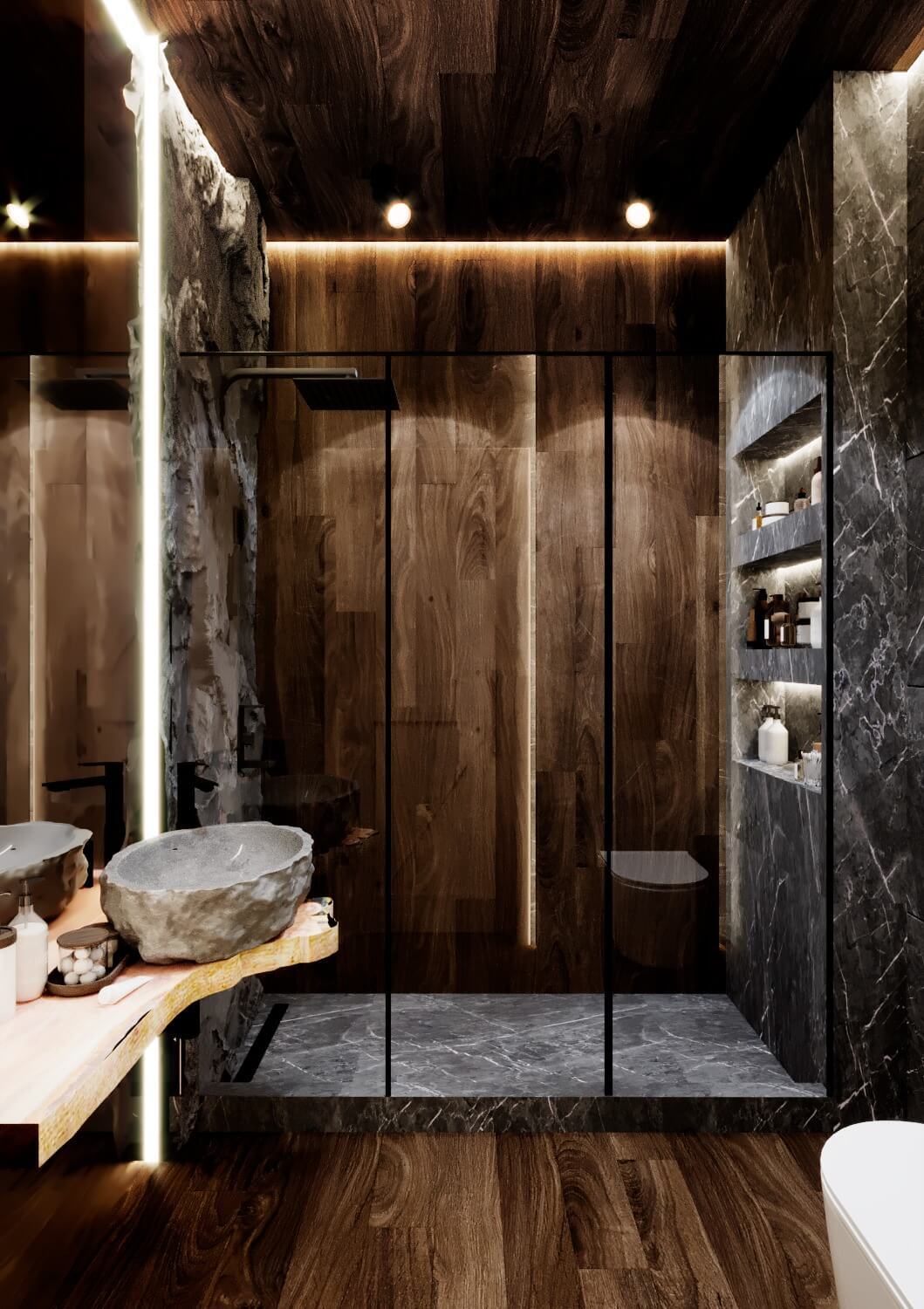 Дом из бруса со спа зоной в современном стиле с элементами эко стиля.