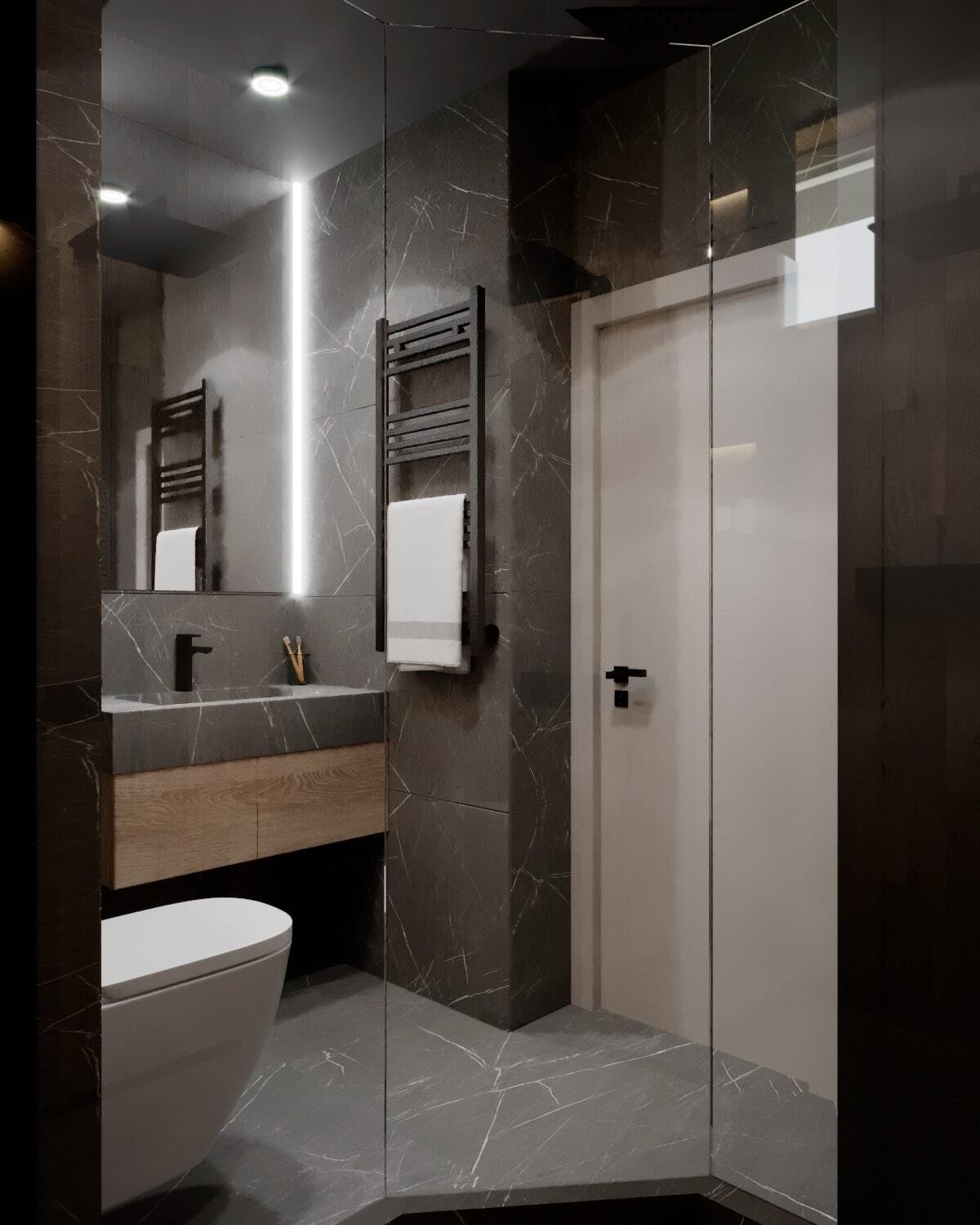 Что касается дизайна. Дизайн квартиры, разработанный с учетом наших пожеланий, получился очень современный, легкий, комфортный и экологичный, где все «заточено» под хозяев, без компромиссов между функциональностью и красотой. Кстати о компромиссах – в ходе проекта я несколько раз пытался «оптимизировать» ряд решений в угоду более бюджетных и простых решений. Немалая заслуга Кати в том, что в итоге мы не отказались от первоначальной задумки в использовании натуральных материалов. Именно поэтому, у нас есть возможность ходить босыми ногами по натуральному массиву лиственницы, чувствуя ее приятную шероховатость, а венецианская штукатурка стен радует не только взгляд, но и руку, если появляется острое желание прислониться к стене.