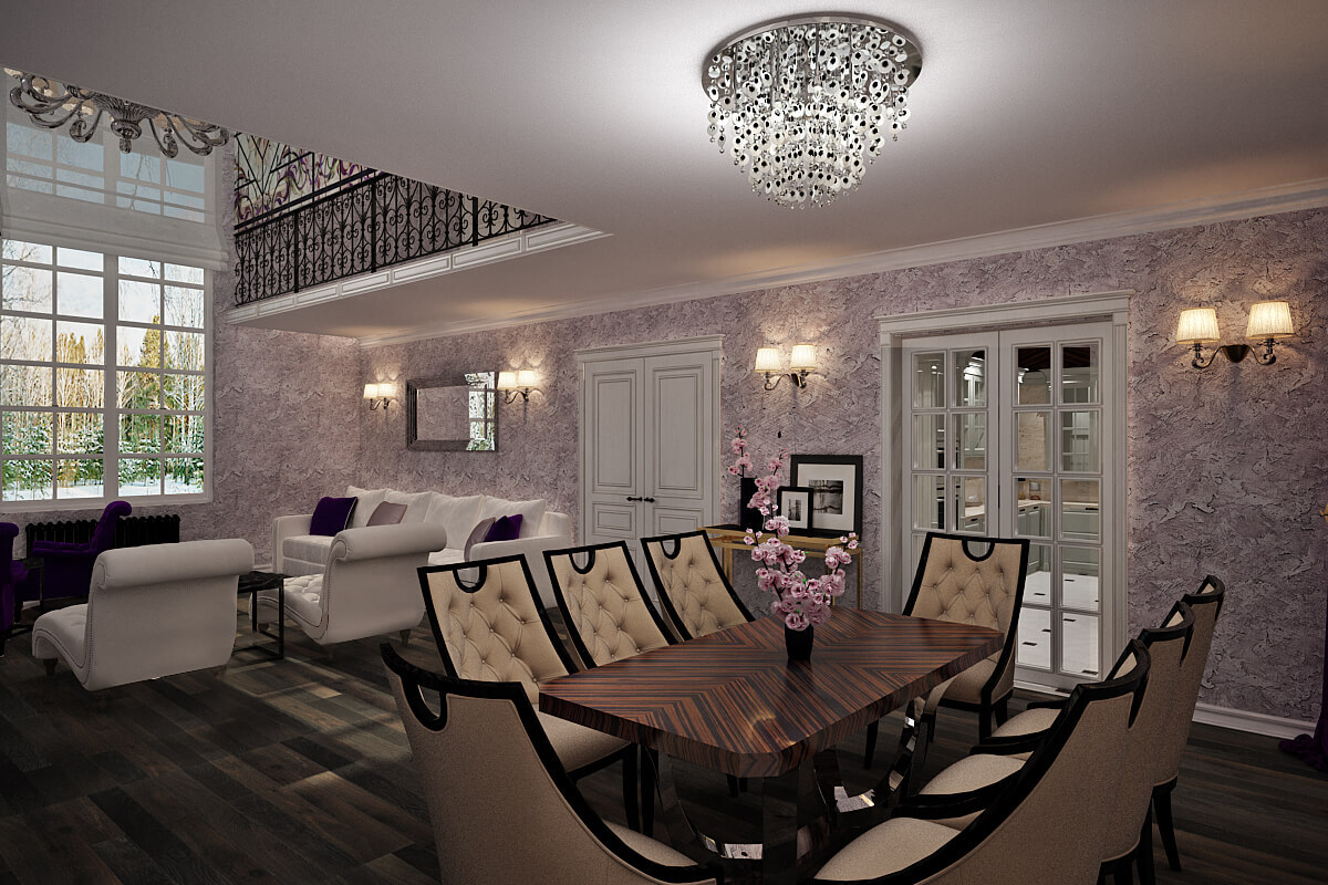 Коттедж Сады Майндорф 1200 м². Просторный загородный коттедж, в котором царит атмосфера послепушкинской эпохи начала 20 века. Интерьер дома сочетает в себе несколько стилей: ар- деко, ар- ново, модерн и классику. Некая русская усадьба современности.