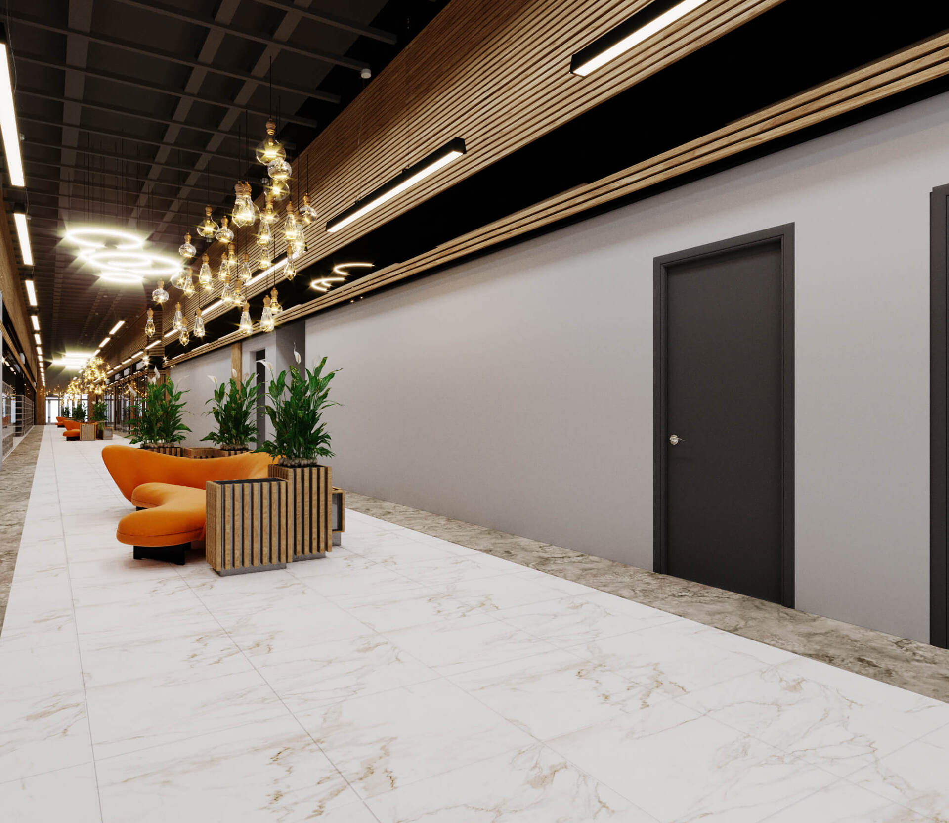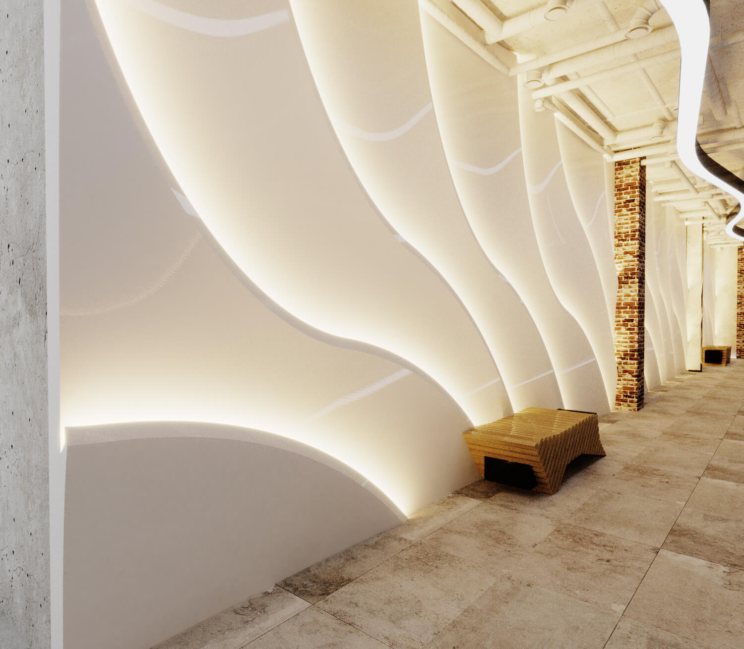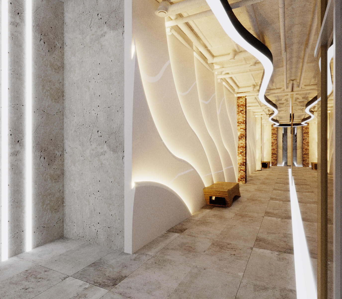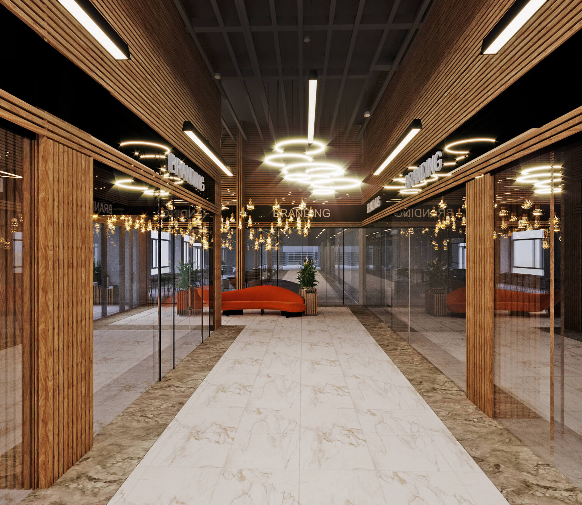 Торговый центр, расположенный на двух нижних этажах нового жилого комплекса Авеню в Подольске. Москва расширяет свои границы, а мы создаем в них уникальные пространства.