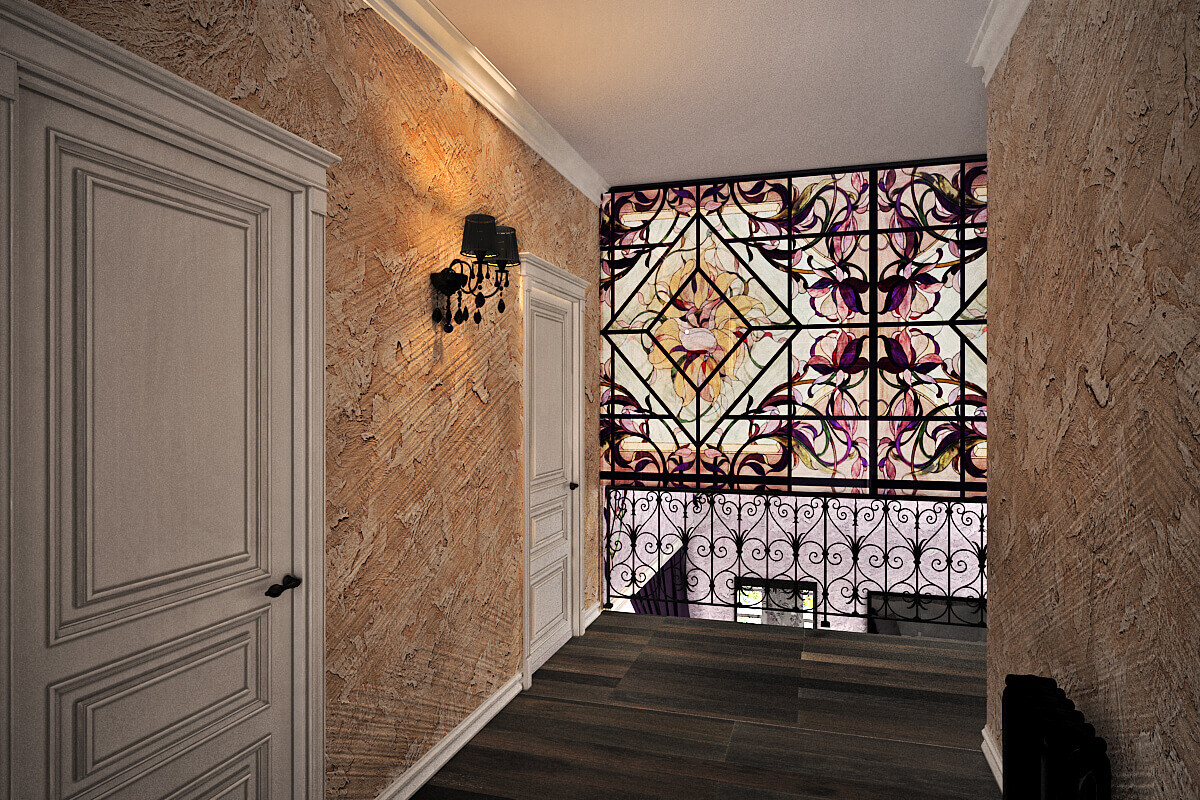 Редекор, частичное переустройство особняка под новых хозяев- молодую семью и детишек. 80% старой отделки осталось без изменений, освежили все стены, камин и добавили декорации.
