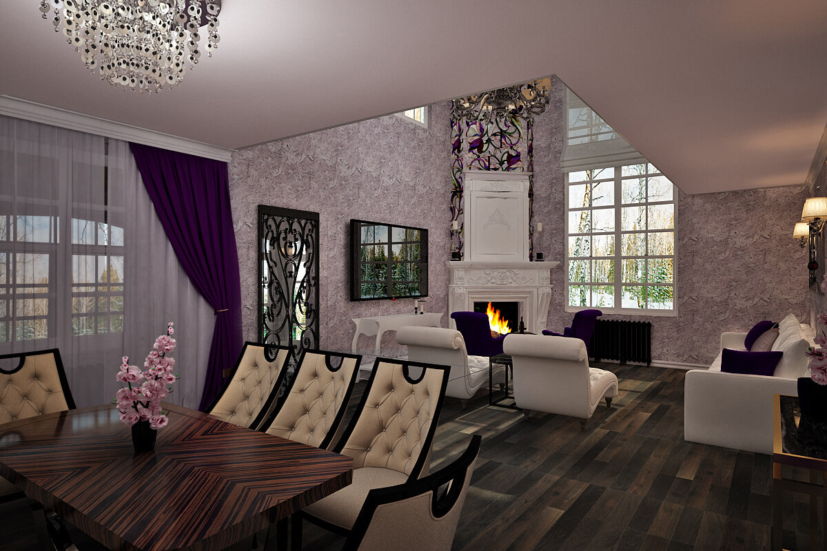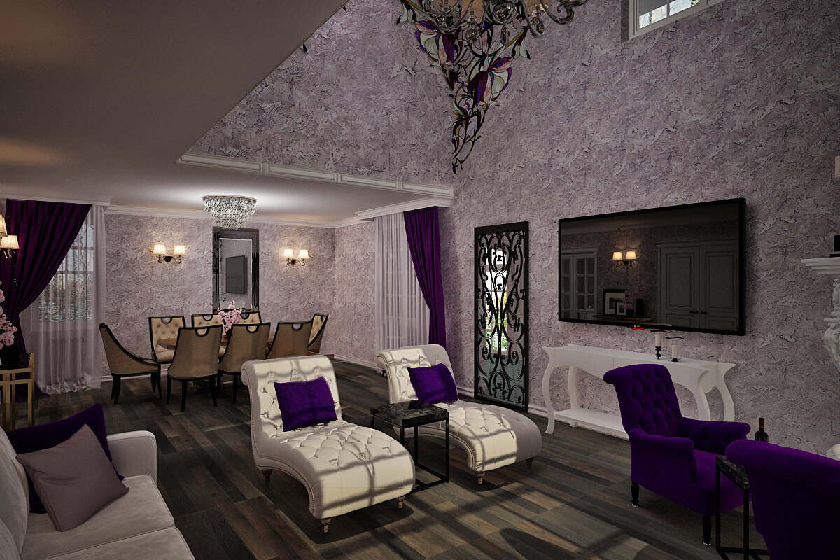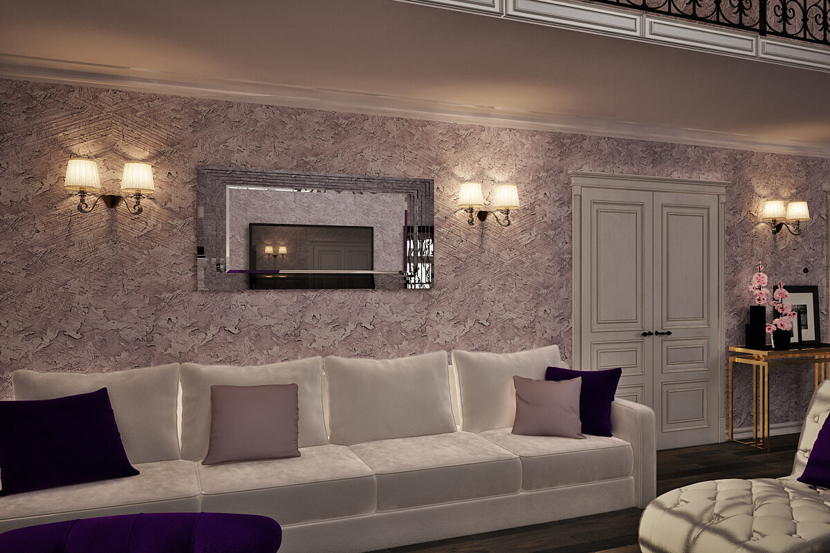 Сталинский арт 62 м². Настоящая сталинка 1953 года, потолки 3100 мм. Жилье для творческой, неординарной личной. Дизайн подчеркивает ярко выраженное женское начало, не исключая при этом и мужские черты. Артистичная прихожая ведет в уютную спальню с фиолетовым пано, затем в декаденсную гостиную и наконец в выдержанную кухню с черным входом.