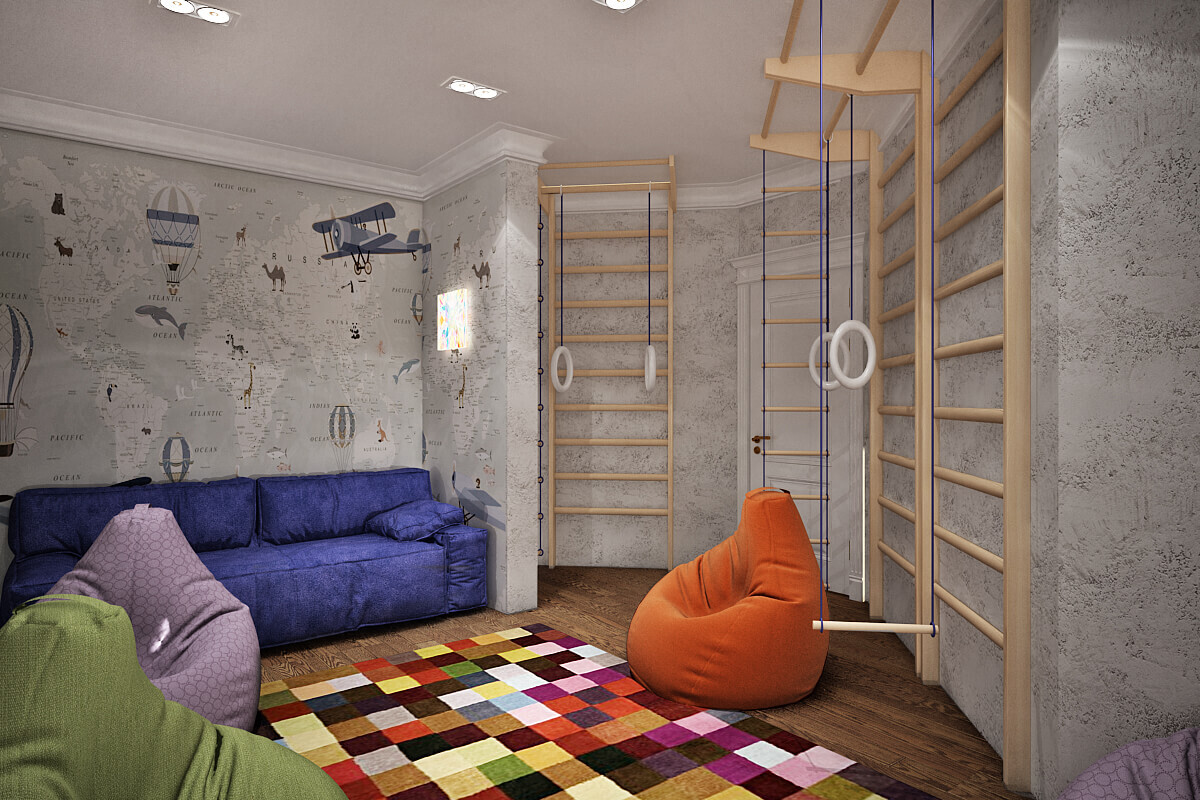 Квартира в новостройке для семьи с тремя сыновьями и часто гостящей бабушки)
