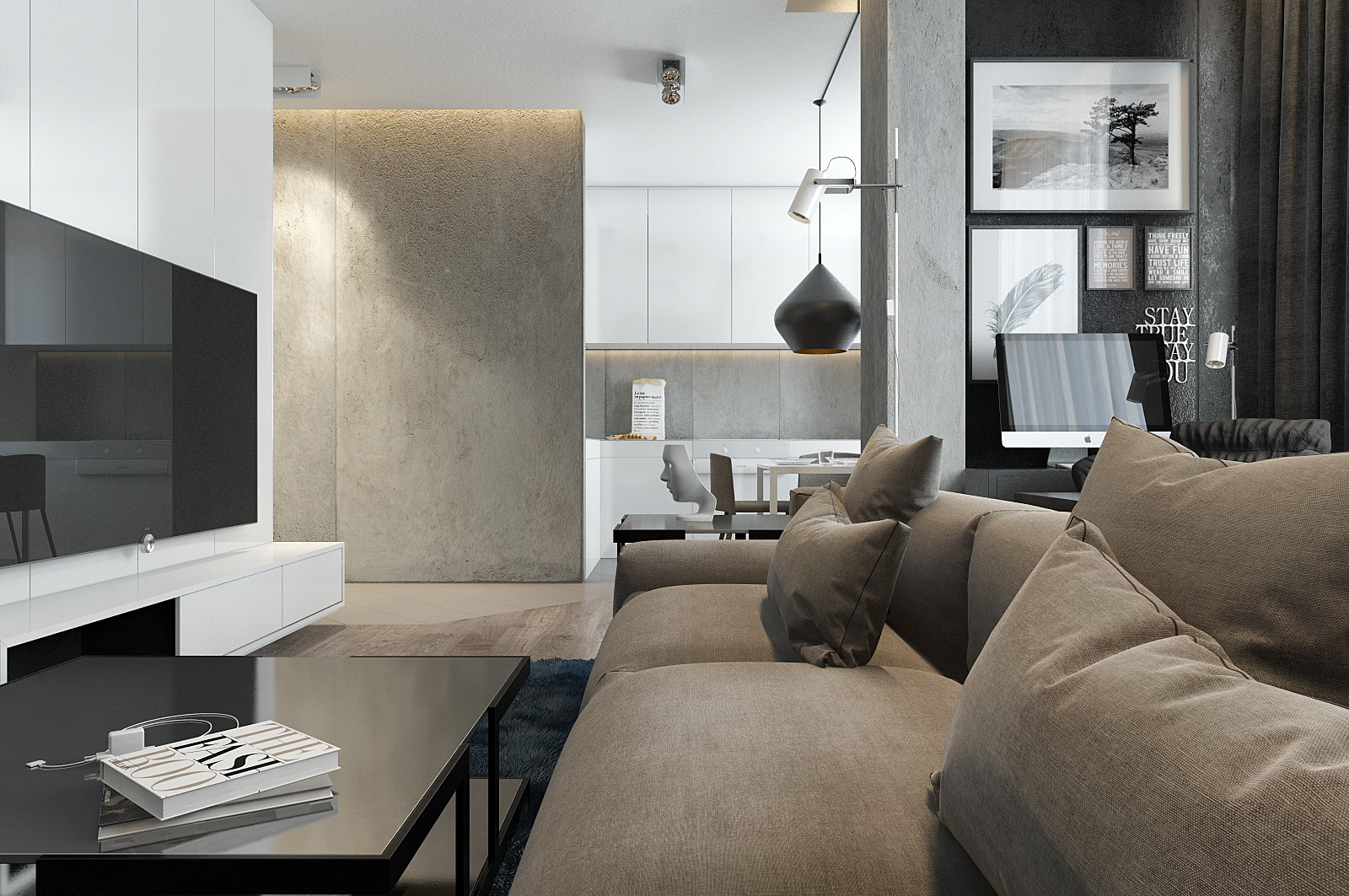 Студия монохрома 50 м². Квартира- студия в элитном жилом комплексе Питера. Интерьер создан для молодого прогрессивного парня, который ценит пространство и время.