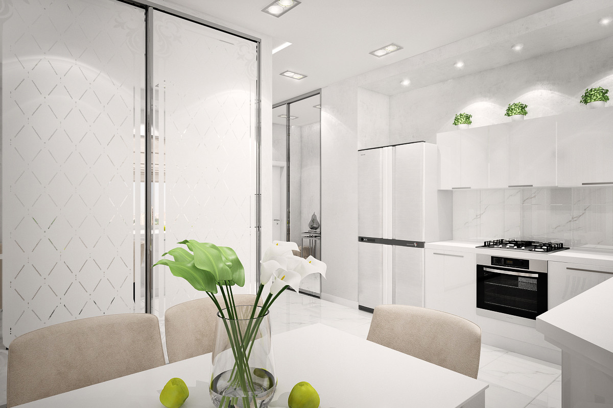 Квартира для молодой супружеской пары. Они знают чего хотят и имею свой стиль. Теперь это отражается и в их новом интерьере. Квартира для отдыха душой и телом. Белее белого 56 м²